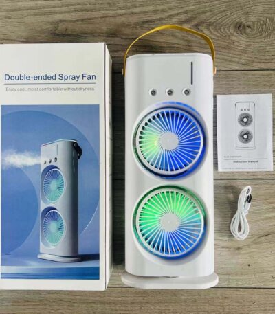 Mini Double Headed Ice Mist Fan – USB Rechargeable Portable Air Cooler