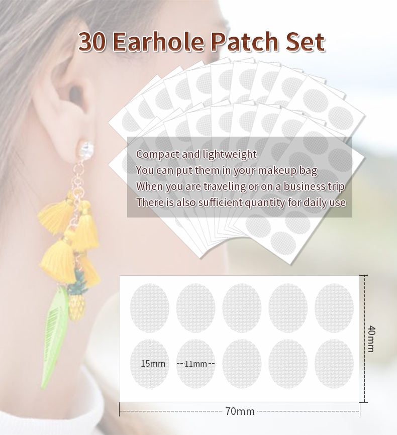 Each patch has a soft, skin-friendly adhesive. It sticks comfortably to the back of your ear. Once placed, it supports the earring so your earlobe feels lighter. The process takes only a few seconds. Just peel, stick, and wear your earrings.