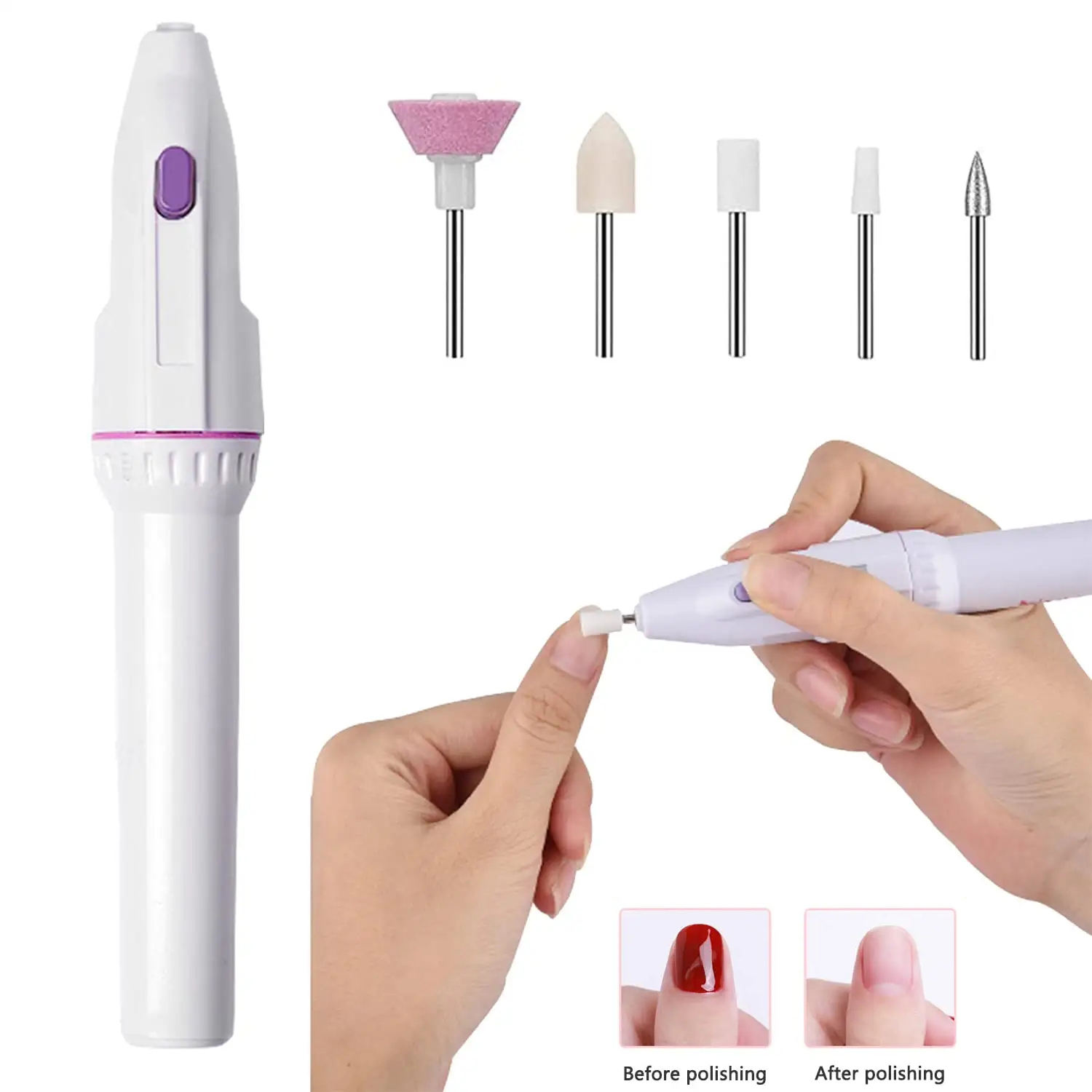 This tool includes five different nail tips: