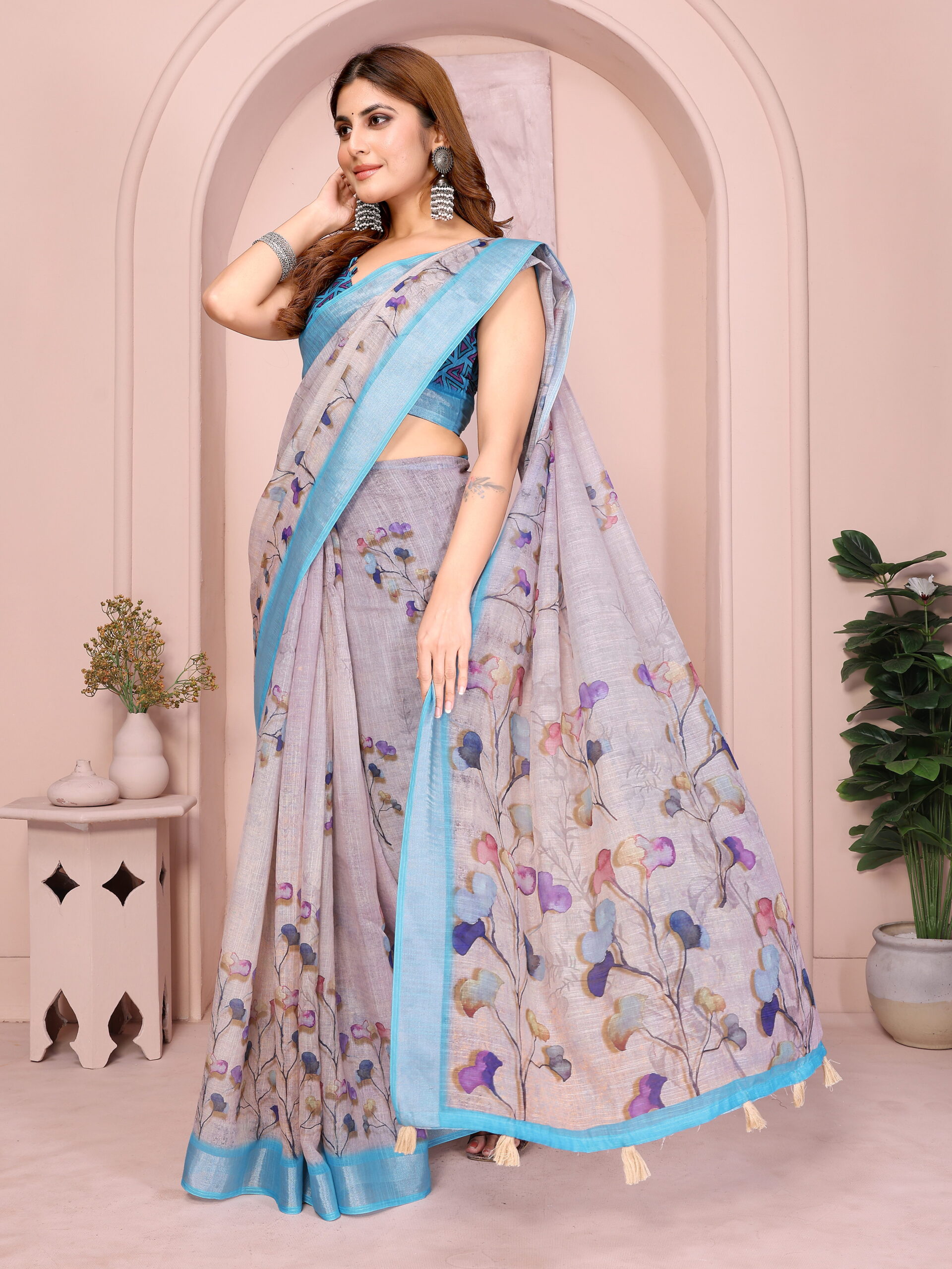 Linen Cotton Saree – Soft Lightweight Floral Design Saree