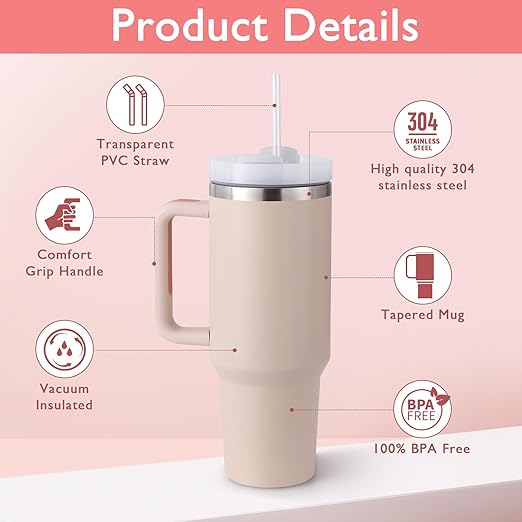 The tumbler features premium stainless steel, which is rust-free and long-lasting. The extra-large 1200ML capacity helps you drink more water without frequent refills. In addition, the leakproof lid ensures your drink stays secure while traveling. The built-in carry handle makes it easy to hold, and the wide mouth allows simple cleaning and ice refilling.